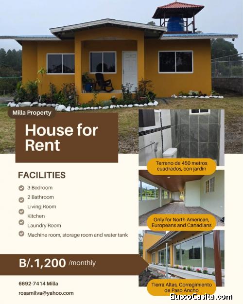 Alquiler de Casa en Tierra Altas- Paso Ancho SE VENDE - NEGOCIABLE - CASA UBICADA EN LA CONCEPCION BUGABA, AREA CENTRICA. VIRGINIA 3Casa en BugagaHermosa casa con terreno amplio en Chiriquí lugar frescoCasas con Fondo Mivi Bugaba Solo Pagas $100 de Apartado. David Chiriquí.Hermosa y centrica casa amobladaHermosa y centrica casa amobladaEn alquiler casa en Residencial Ciudad Jardín Santa Marta - Bugaba ChiriquíSe vende casa en 90 mil negociableProyecto Residencial En Bugaba Modelo Girasol Tía María