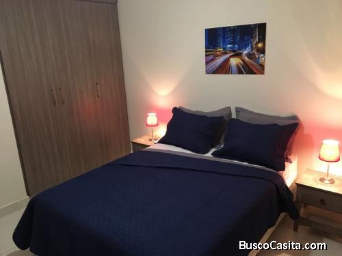 Alquilo lindo apartamento de dos recámaras, dos baños,sala comedor,cocina, área social con piscina, gimnasio,un estacionamiento, garita de seguridad, totalmente amueblado, balcón, aires acondicionados en las recámaras y sala. Disponibilidad inmediata