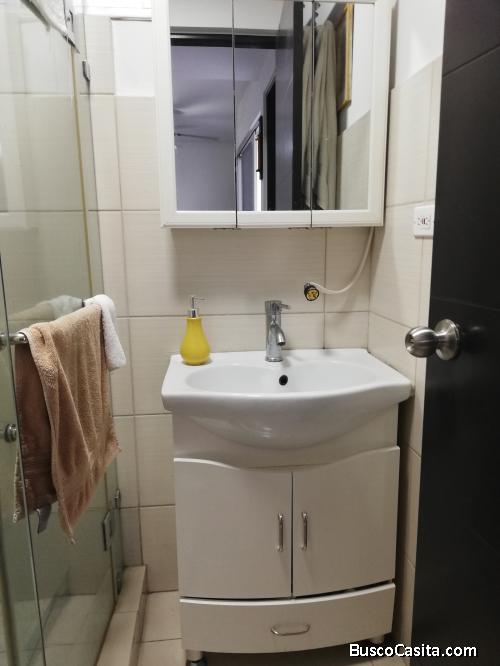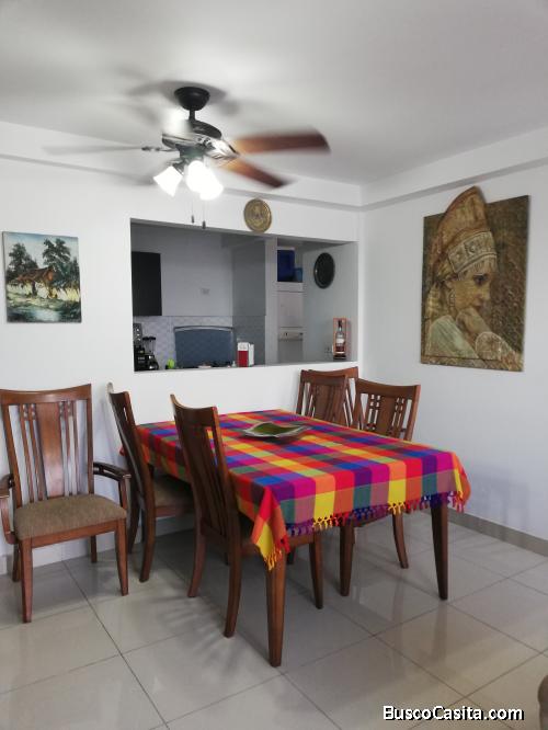 Precioso apartamento de 70 mt cuadrados . 2 habitaciones 1 baño. Equipado con línea blanca (nevera, estufa, centro de lavado), aire acondicionado y abanicos de techo. Excelente ubicación y espectacular vista. Cerca de colegios supermercados y farmacias, bancos y centro comercial. Planta eléctrica total. Estacionamiento techado dentro del edificio y en planta baja. Cuenta con puestos para visitas. Seguridad 24/7. Amplia área q social e infantil. Fácil acceso por varias vías ( Av. Cincuentenario, Av. Santa Elena, Vía España).