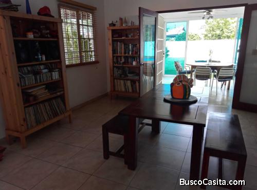 Accede a través de una una vía privada hasta su nueva casa. Cuenta con 3 habitaciones, dos baños y medio, una amplia e iluminada sala familiar, zona de recreación con puertas de vidrio que conectan con la piscina de 7 metros, cocina con isla, estacionamiento para dos vehículos, área de barbacoa y juegos, depósito, sistemas de alarmas y agua caliente para toda la casa. Algunos muebles se pueden negociar.