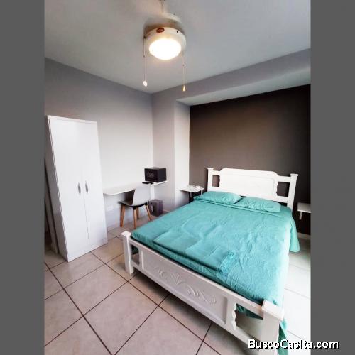 Ganga, se alquila céntrica habitación en edificio con acceso directo al Parque Omar y Vía España. La habitación cuenta con baño privado, aire acondicionado inverter, internet de alta velocidad, Smart TV de 42 pulgadas.