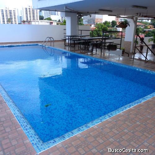 Se alquila apartamento en PH Metro Tower Carrasquilla, 2 habitaciones, 2 baños, área social con piscina, línea blanca incluida.