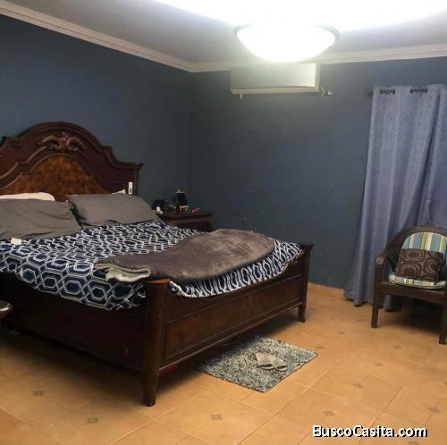La casa tiene 5 recamaras, 3 1/2baños , sala, comedor.